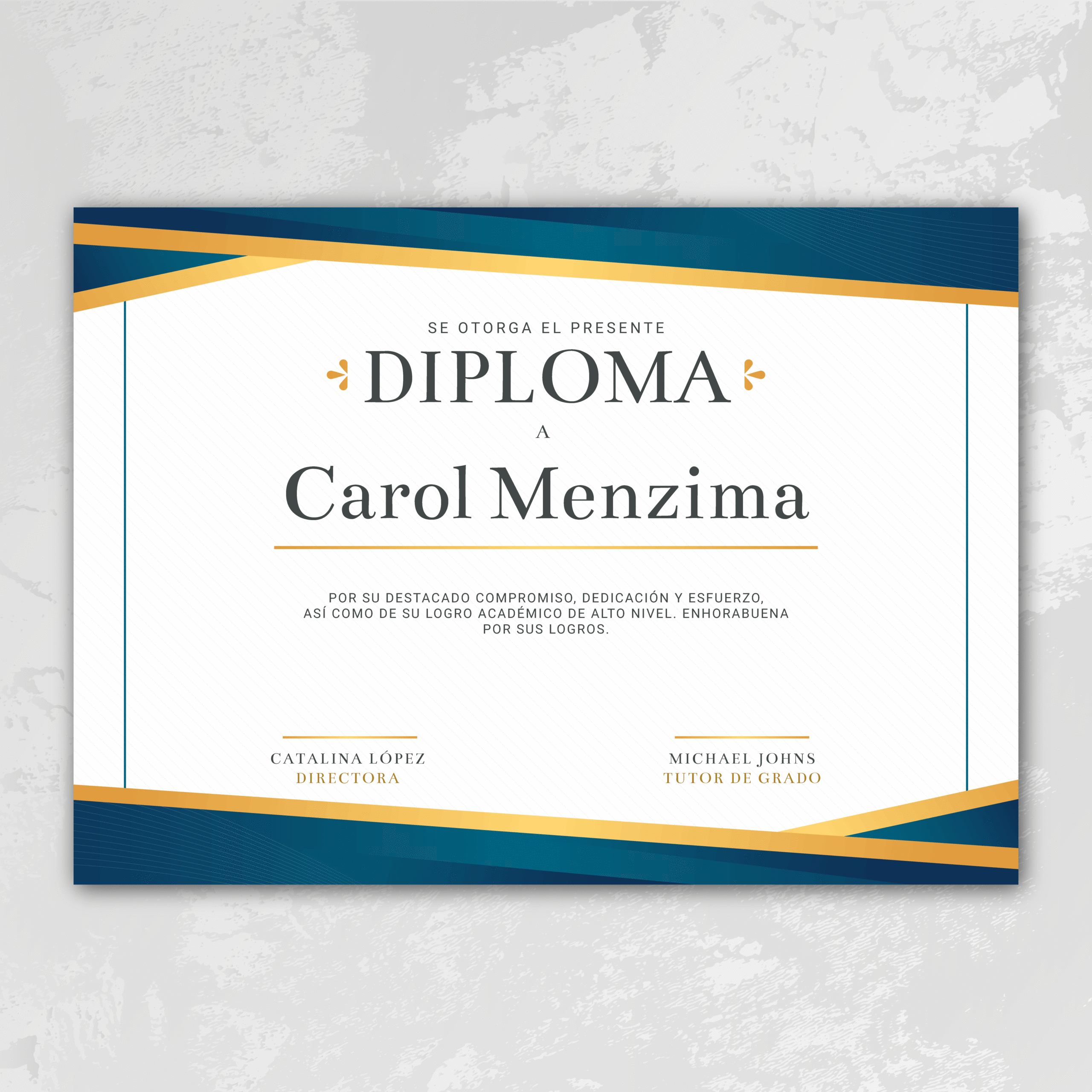 Reconoce logros importantes con nuestros diplomas personalizados. Diseños formales y modernos, impresión nítida y acabados de calidad para una presentación profesional.