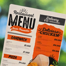 Muestrales a tu clientes toda la variedad de platillos que pueden deleitarse con este letrero de menú, hecho con un material resistente y un diseño atractivo.